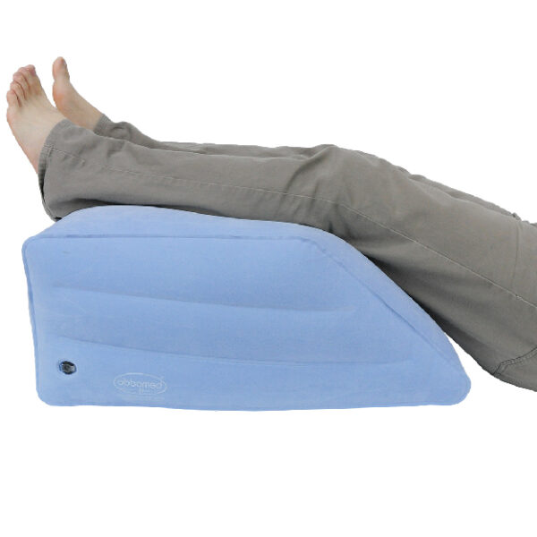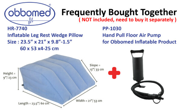 The ObboMed HR-7740 Inflatable Leg Bed Wedge Pillow with velour surface helps users gain high-quality sleep in bed, velour-coated PVC for extra comfort. Elevating foot ,Versatile design for perfect use while sleeping, lying or seating to support and relax Back, hip and Knee Pain Relief, Foot and Ankle Injury and Recovery.