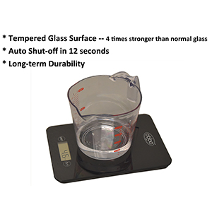 The ObboMed MM-2300 Digital Kitchen & Food Scale is the ideal kitchen companion for all your cooking and dietary needs, allowing you to get complete control over meal portions, seasoning, and nutrition. Large LCD screen displays weight in gram, lb:oz, oz, and ml. Tare function allows users to easily determine the net weight of an item in its container. Tempered glass surface is four times stronger than normal glass, ensuring long-term durability. Auto shut-off preserves long battery life.