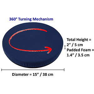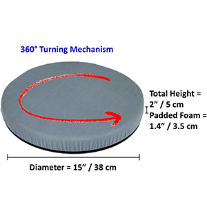 The ObboMed SS-2750 360° Swivel Seat Cushion ABS base allows effortless swiveling and twisting while seated, preventing hip and back form strain.