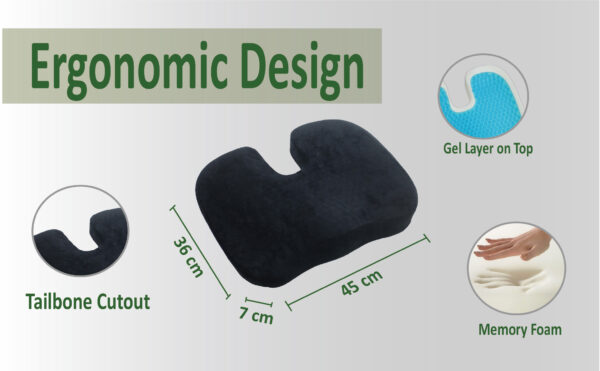 The ObboMed SU-2650 Cool Gel Memory Foam Coccyx Cushion helps to alleviate the accumulated pressure in your tailbone and lumbar area. It is especially good for people who spend long time sitting, and perfect for someone who is suffering from coccyx injuries, lower back / hip and leg pain.