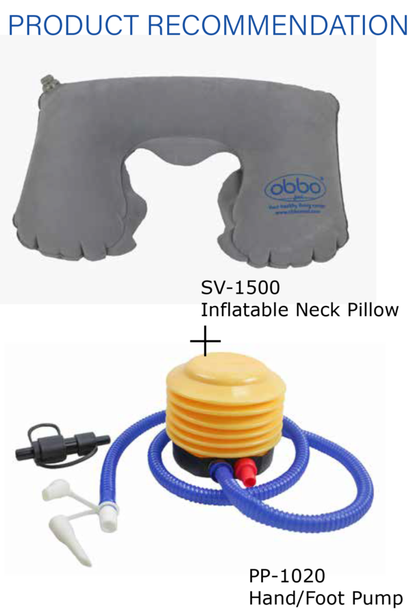 Tje ObboMed SV-1500 Inflatable Neck Cushion has a durable PVC inner tube with velour surface for your sleeping comfort. Provides perfect neck support to help you maintain proper posture, while reducing strain and headaches. Compact; Light compact size is easy for long or short trips. Inflates/deflates effortlessly; ideal for being used anywhere.